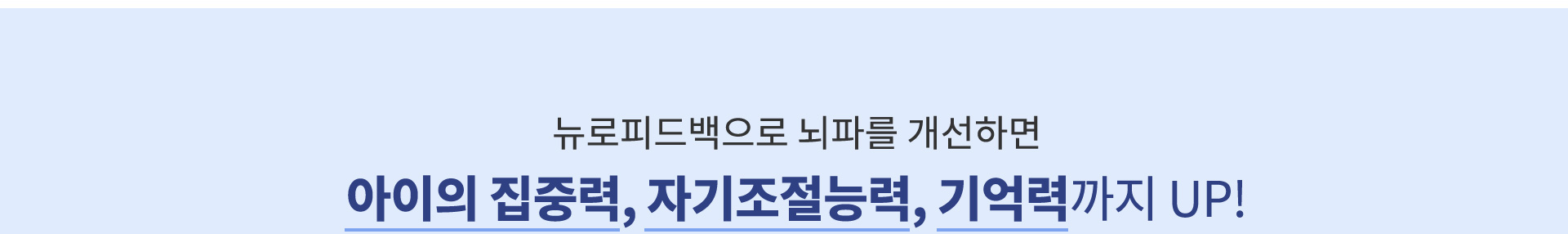 우리 뇌는 상황마다 적절한 뇌파가 발현되지 않으면 질 좋은 잠을 자지 못하거나 휴식효율이 떨어져서 같은 시간을 자더라도 일상생활에서 피곤함을 느낄 수 있고, 주의 집중 효율이 떨어지면 같은 시간 동안 공부를 하더라도 학습 능률이 높지 않을 수 있습니다. 그러나, 꾸준한 뉴로피드백 훈련을 통해 주의 집중력을 대표하는 SMR과 베타파가 원활하게 나타나도록 하고, 공부시에는 알파파의 흐름을 원활하도록 하면 휴식 및 수면, 학습 효율을 높여줄 수 있어 성적 향상에 큰 도움이 될 수 있습니다.